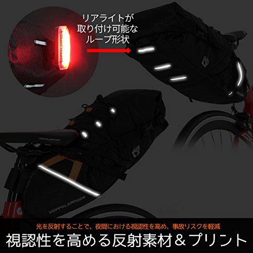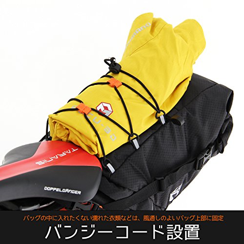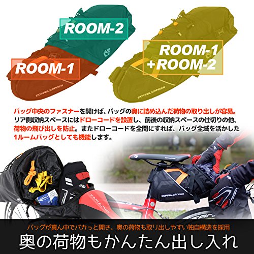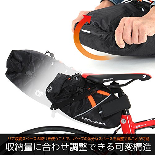 ロードバイクやクロスバイクなどの自転車関連やオートバイ関連の用品を扱うブランド「ドッペルギャンガー」から販売されている防水性に優れたターポリン生地を採用して作られた自転車用のサドルバッグになります。