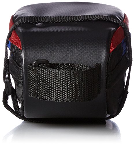 コンパクトサイズながらも収納力が高いと口コミでも評価が高く、ブルーのファスナー部の上にレッドカラーを配置してシックなブラックでまとめたおしゃれなデザインを採用し、ブランドの英文字が更にアクセントとなっています。取り付けはストラップで簡単にでき、取り外しも容易に行えます。
