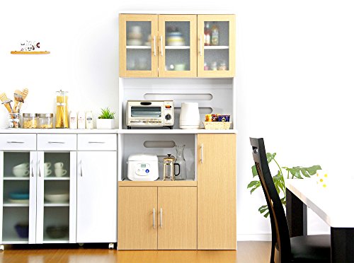 市販品と自作を見比べるために、スライドテーブル付きのキッチン家具を3つご紹介しましょう。まずは、ブラウンと白のカラーリングがおしゃれなキッチン収納家具。