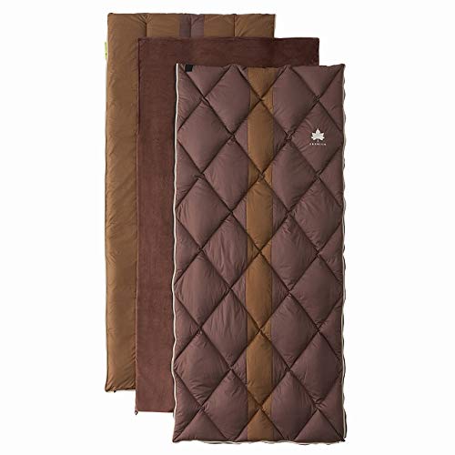 裏地素材に暖かく柔らかな質感のフリース素材を採用し、中綿には保温性に優れている化繊のダウンを封入しています。秋冬向けに作られた寝袋で、選び方では快適温度0度と5度の2種類から選択する事ができます。色もレッドチェックとブラウンチェックの2種類のデザインがあります。