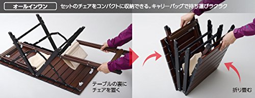 アウトドアシーンに携行しやすい折りたたみタイプのテーブルチェアセットで、チェアをテーブルの中に収める事ができ、テーブルの上部にはハンドルが付いていますので、力の弱い方にも楽に持ち運びする事が出来ます。お値段も安く、コスパの高い評判の良いテーブルチェアセットです。
