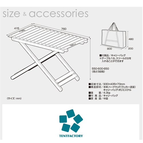 出典: https://www.amazon.co.jp/%E3%83%86%E3%83%B3%E3%83%88%E3%83%95%E3%82%A1%E3%82%AF%E3%83%88%E3%83%AA%E3%83%BC-%E3%82%A6%E3%83%83%E3%83%89%E3%83%A9%E3%82%A4%E3%83%B3-%E3%82%B9%E3%83%AA%E3%83%BC%E3%83%9D%E3%82%B8%E3%82%B7%E3%83%A7%E3%83%B3%E3%83%86%E3%83%BC%E3%83%96%E3%83%AB-%E3%83%8A%E3%83%81%E3%83%A5%E3%83%A9%E3%83%AB-TF-WLPT-NA/dp/B00J7K9L8Q/ref=sr_1_31?ie=UTF8&qid=1539481426&sr=8-31&keywords=%E3%82%AD%E3%83%A3%E3%83%B3%E3%83%97+%E3%83%86%E3%83%BC%E3%83%96%E3%83%AB&refinements=p_89%3ACampers+Collection%28%E3%82%AD%E3%83%A3%E3%83%B3%E3%83%91%E3%83%BC%E3%82%BA%E3%82%B3%E3%83%AC%E3%82%AF%E3%82%B7%E3%83%A7%E3%83%B3%29%7C%E3%83%86%E3%83%B3%E3%83%88%E3%83%95%E3%82%A1%E3%82%AF%E3%83%88%E3%83%AA%E3%83%BC%28TENT+FACTORY%29高さを55cm、60cm、65cmと3段階の高さに調節して使用できる機能性の高さも魅力的なテーブルです。脚部を折りたたみしてコンパクトに出来ますのでアウトドアシーンに携行するのも簡単です。ナチュラルカラーとブラウンカラーの計2色から選択出来ます。