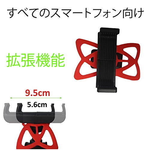 スマホの4隅に固定出来るシリコン製のバンドが付いていて、すべてのスマホを取り付け出来るように5.6cm幅〜9.5cm幅まで自在に変えられる拡張機能が備わっている自転車用のスマホホルダーになります。