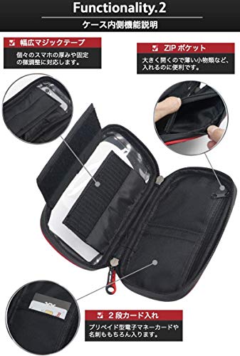 高品質な防水素材や防水ファスナーを採用して作られているケースなので、雨や雪の降る環境下においても水滴の侵入をしっかりと防いでくれて安全に携行する事ができる防水タイプのスマホホルダーで、ケースの上からでもタッチ操作が可能です。