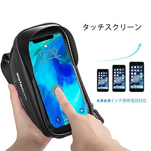 出典: https://www.amazon.co.jp/%E3%83%8F%E3%83%B3%E3%83%89%E3%83%AB%E3%83%90%E3%83%83%E3%82%B0-EletecPro-%E3%83%95%E3%83%AC%E3%83%BC%E3%83%A0%E3%83%90%E3%83%83%E3%82%B0-TPU%E3%82%BF%E3%83%83%E3%83%81%E3%82%B9%E3%82%AF%E3%83%AA%E3%83%BC%E3%83%B3-6-0%E3%82%A4%E3%83%B3%E3%83%81%E5%AF%BE%E5%BF%9C/dp/B07B7F79K7/ref=sr_1_21?ie=UTF8&qid=1539391993&sr=8-21&keywords=%E3%82%B9%E3%83%9E%E3%83%9B%E3%83%9B%E3%83%AB%E3%83%80%E3%83%BC%E3%80%80%E9%98%B2%E6%B0%B4取り付け方法もマジックテープバンドにより自転車のハンドルに巻きつけて固定するだけと簡単です。6インチ以下のスマホであれば機種関係なく使用する事ができるケースです。悪天候の環境下でも違反なく安全にスマホを操作出来るおすすめの自転車用スマホスタンドです。