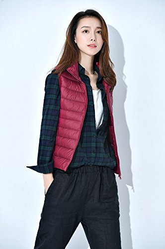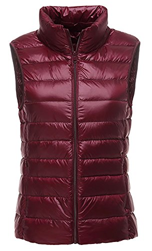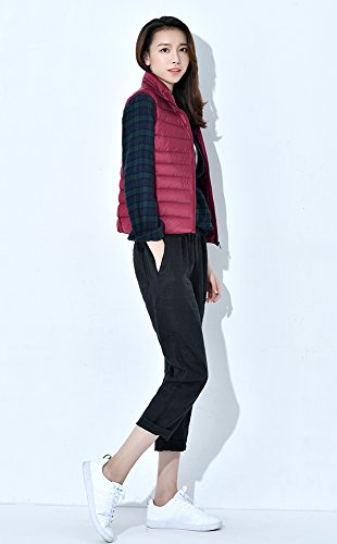 Pampera(パムペラ) ダウンベスト レディーズ 軽量 防風 防寒 暖かい ウルトラライト インナーダウン 便利な収納袋付き P730 (L, 襟•赤ワイン)