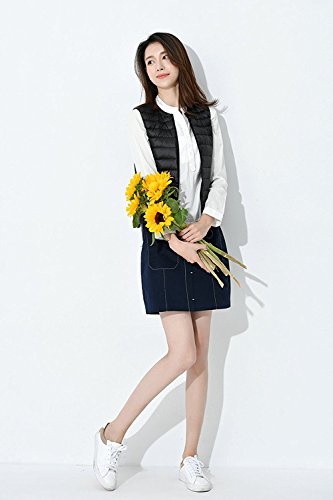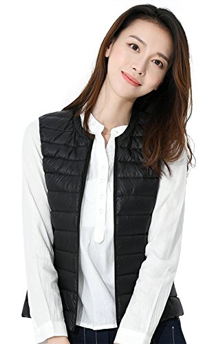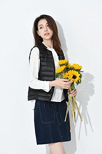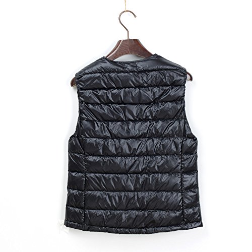 Bliss ダウンベスト レディース ライト 軽量 防寒 ウルトラライト ダウン ベスト 楽しく選べる全14パターン (L, (襟なし) 黒)