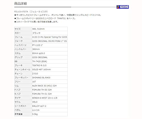 GIOS FELUCA PISTA フェルーカピスタ ミニベロ 2019年モデル