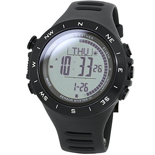 タフ・多機能で使い勝手の良い製品4個目は「LAD WEATHER センサーマスター」です。こちらは登山をされる沢山の方に親しまれていた腕時計の上位モデルで、天気や高度計、コンパスといった性能に加え、歩数やカロリー計測も可能。防水は100m防水となっていますので、ウォータースポーツ時でも問題なく使用出来ます。ミネラルガラスは傷がつきにくく、厳しい環境にも対応。他の多機能製品と比べて安価なのも嬉しいポイントですね。
