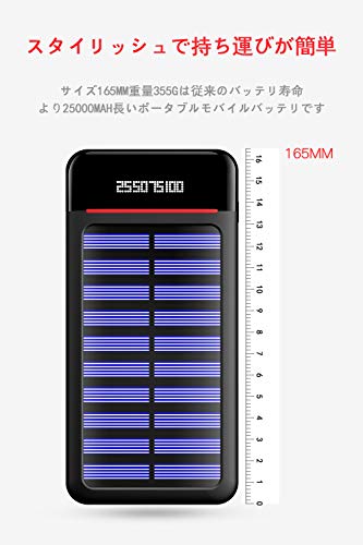 ソーラーチャージャー モバイルバッテリーRLERON 25000mAh 大容量 携帯用充電器 急速充電人気 powerbank 2USB入力ポート(2.4A+2.4A) 3USB出力ポート(2.4A+2.4A+2.4A)LCD残量表示防水・防塵・耐衝撃 旅行、ハイキング、アウトドア/キャンプ / 地震/災害時/防災に大活躍 LED電灯・ライター機能付き 飛行機 Android/micro/type-c