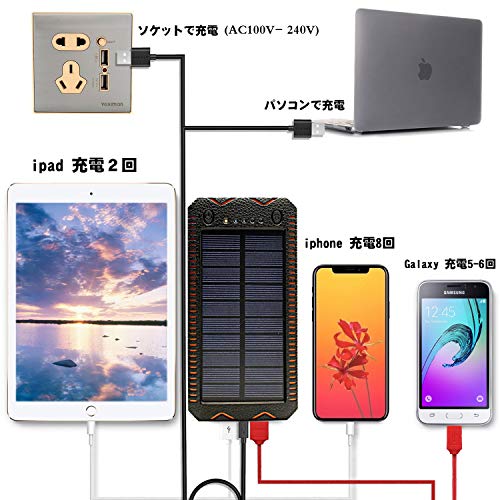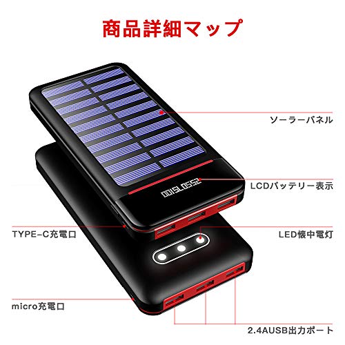 20000mAh ソーラーチャージャー モバイルバッテリー