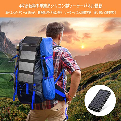 20000mAh ソーラーチャージャー モバイルバッテリーは、4枚のソーラーパネルが収納されており他の充電器よりは4~6倍ほど高速で充電することが可能です。