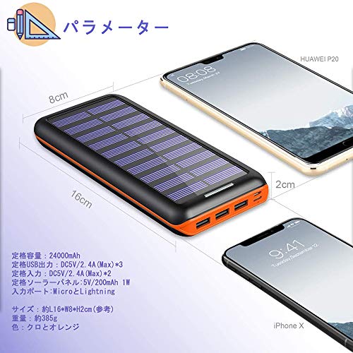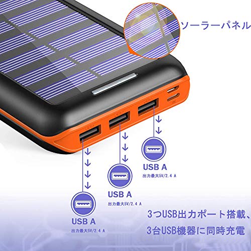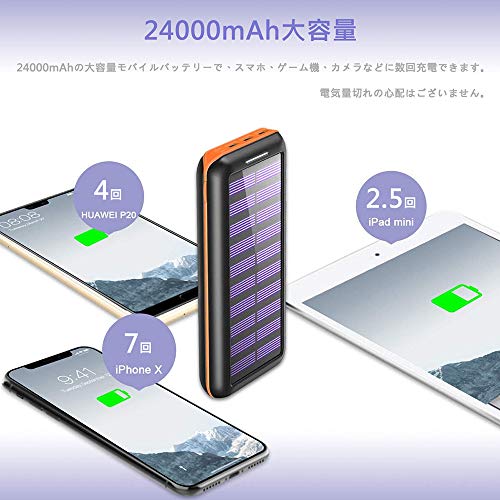 ソーラーチャージャー モバイルバッテリー 24000mAh