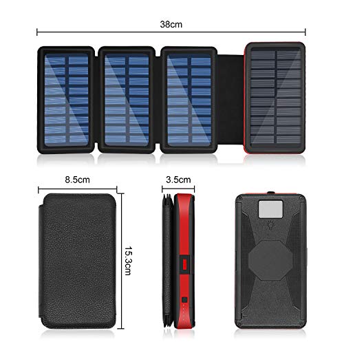 ソーラーチャージャー モバイルバッテリー 24000mAh 大容量 折り畳み式 2USB出力ポート 4枚ソーラーパネル 急速充電 高輝度LEDライト付き 太陽光充電 Android/iPhone/iPad など等に対応 登山/地震/災害/旅行/出張/アウトドア活動などの必携品