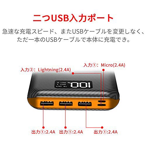 口コミでも人気のコストパフォーマンスに優れたモデルです。iphoneXなら5回フル充電できます。タブレットも2回ほど充電ができます。USB出力3ポートを備えているので、同時に3台のスマホに充電可能です。また、2.4Aの急速充電にも対応しています。