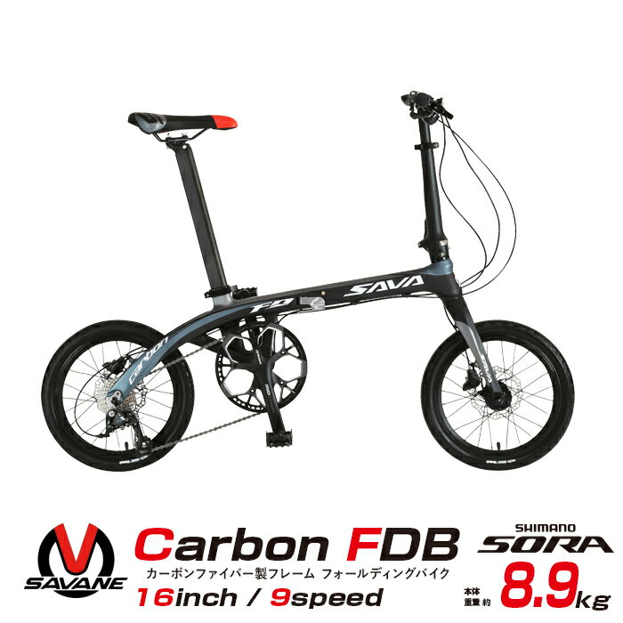 SAVANE Carbon8 FDB169Sは、8.9キロの超軽量に加えて折りたたみのジョイント部にアルミを使いカーボンフレームとしっかり固定しています。ジョイント部は更にダブルロック仕様になっていて、安全性能は折り紙付きで、独特のディアドロップ型のシートも珍しく、オリジナル感があふれる折りたたみ式のミニベロは、特別な逸品を求める方におすすめの商品です。