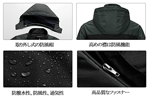こちらの冬登山に適した服装は、レインコートとしても使用できる優れもの。しっかりとした撥水性を誇っているため、雨や雪を防止します。フード部分は脱着が可能なので、邪魔になる場合は取り外してください。