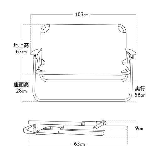 二人掛けできるローチェアで、耐荷重も160kgまで対応しています。お子さんと座ったり、パートナーと座ったり、使い勝手は良いです。幅広い割りにアルミフレームで軽く、折りたたみできるので薄くなります。2人分のチェアと考えれば、収納に便利です。またコストパフォーマンスの良さも魅力です。