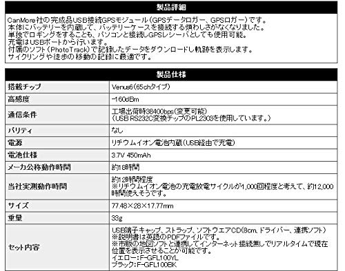 GPSデーターロガー 小型ハンディGPS 携帯式GPSロガー バッテリ内蔵 自分の軌跡が記録 ドライブ アウトドア 釣り 登山 CANMORE イエロー GT-730FL-YL