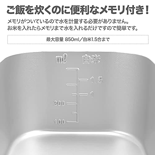 外側にはメモリが付属しており、簡単に炊飯できます。2000円程度で購入できるため、コストパフォーマンスのいい商品を探している方にも最適です。最もコンパクトな調理ギアと言えます。