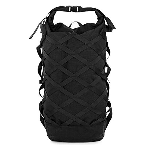 2013年にスタートした「ブラアシイ インダストリー」のWICKERというリュックをご紹介します。まず目を引くのが格子状のベルト、クロスされたカーゴネットはサイズを自由に変化でき、ペットボトルやヘルメットまで収納可能な領域があります。カラビナやキーリングを掛けたり、この見せる収納が使い方によってかっこいいものです。