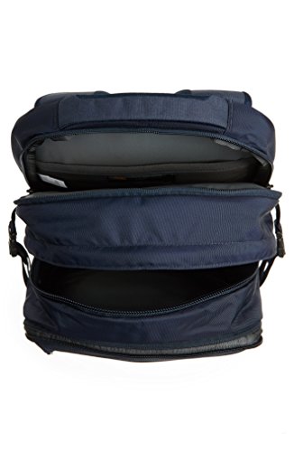 リュックの選び方でまず重要なのがルックスです。このリュックの生地には光沢があり高級感を持ち合わせています。上部の覆い部分は防水性だけでなくセキュリティ面でも生かされます。入り口を開けると外部からの出し入れもできる15インチのPCポケットがあります。サイドにはジッパー付の小物収納も備えて便利です。見た目はとてもアルパイン風なのに、機能はタウンユースにも対応している、メンズにかっこいいリュックになります。