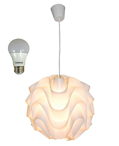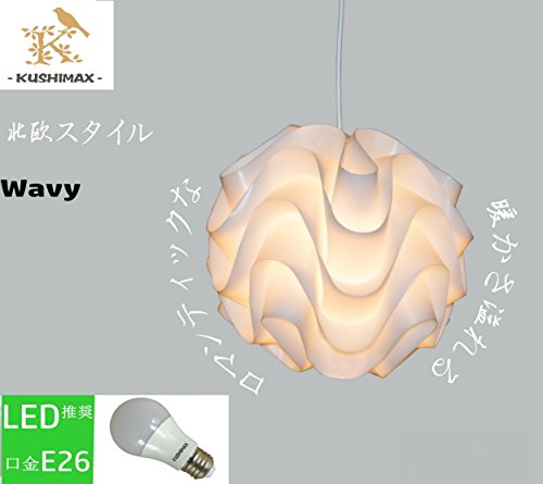 KUSHIMAX 『Wavy』 ウェーブ ペンダントランプ エコポリプロピレンペンダントライト 北欧デザイン照明 LED電球付き クラシック作品 (32X32 本体+LED電球)