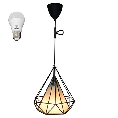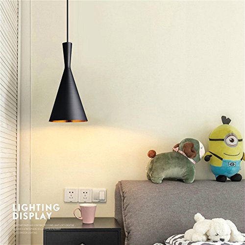 Akarilight 天井照明 ペンダントライト 吊り下げ照明ライト レトロモダン 照明器具 アンティーク調 ペンダント ダイニング リビング用 居間用 カフェ風 食卓用 照明 黒色の金属製骨組みと 布のシェード (本体のみ, 25cm)