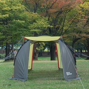 2018年新作のおすすめアウトドアテント10個目は「DOD・ロクロクベース」です。こちらは先述して紹介したカンガルーテントとセットで使用するのがおすすめ。名前の通り、6m×6mサイズとなっており、非常に大きなサイズです。開放感があり、ファミリーで楽しくキャンプが出来ますね。キャンプ場でよくある10×10m区画に使用した場合、車も丁度入るサイズとなっています。