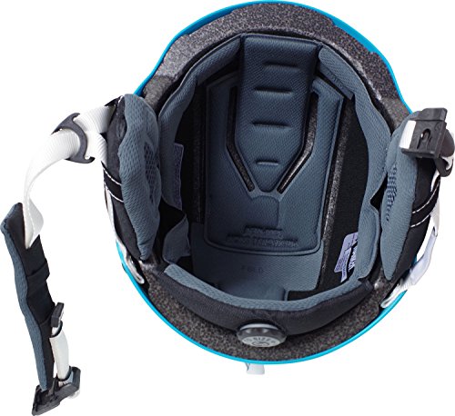 それにこのスキー用ヘルメットはマグネット式のストラップを採用しているので、片手でも開け閉めが可能になっています。スキーの板やゴーグルなどを持っていて、片手が塞がっていても大丈夫で、非常におすすめです。内部にはクッションがあり、とても柔らかく、耐衝撃性に優れています。もし転んで雪山に頭をぶつけてもあまり痛くなく、ダメージを受けずに済みます。