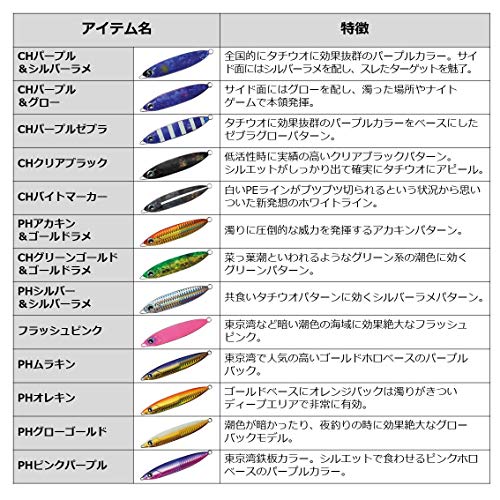 太刀魚ジギングといっているので、もちろん使用するのは、メタルジグになります。各メーカーから、様々なメタルジグが登場してはいますが、その中でも、大手釣り具メーカーであるDAIWAさんの鏡牙ジグをおすすめしましょう。カラーがかなりベーシックな構成ながら、はっきりしている点がおすすめのポイントの1つです。基本的に、グロー、ゴールド(アカキンなど)、ピンク系、シルバー系などといった、特に持っておきたいカラーの充実度は勿論、アクション性能も高く、一押しできるメタルジグとなっています。是非お試しください。
