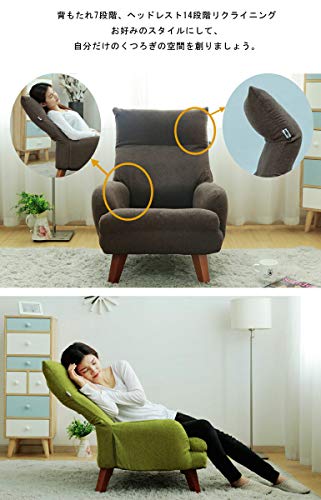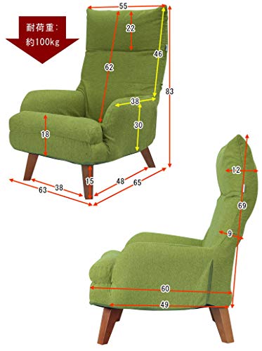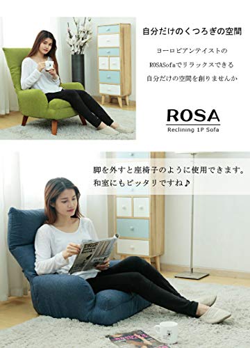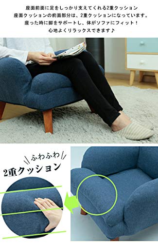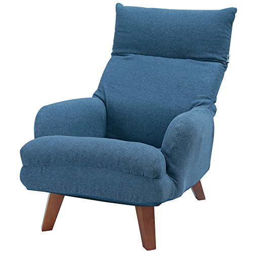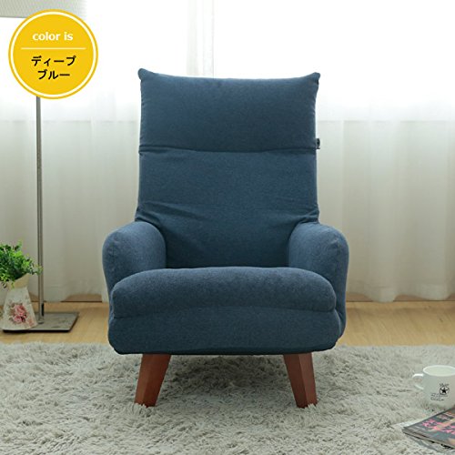 UNE BONNE(ウネボネ)ソファ 座椅子 1人掛 チェア 背もたれ7段階・ヘッドレスト14段階リクライニング 北欧風 木製脚 脚部脱着可 脚のみ取付 ディープブルー
