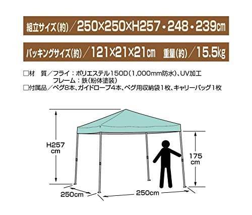 出典: https://www.amazon.co.jp/%E3%82%AD%E3%83%A3%E3%83%97%E3%83%86%E3%83%B3%E3%82%B9%E3%82%BF%E3%83%83%E3%82%B0-CAPTAIN-STAG-%E3%82%AF%E3%82%A4%E3%83%83%E3%82%AF%E3%82%B7%E3%82%A7%E3%83%BC%E3%83%89250UV-UA-1075/dp/B07GN7Z12G/ref=sr_1_3?ie=UTF8&qid=1540683168&sr=8-3&keywords=%E3%82%AD%E3%83%A3%E3%83%97%E3%83%86%E3%83%B3%E3%82%B9%E3%82%BF%E3%83%83%E3%82%B0%E3%80%80%E3%82%BF%E3%83%BC%E3%83%97組立サイズ / 約250 × 250 × H257,248,239cm