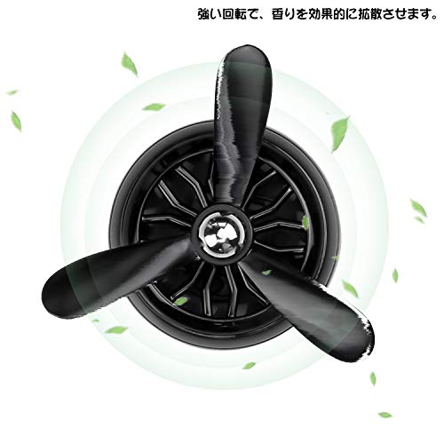 エアコンの吹き出し口へとクリップで簡単に取り付けられて、中のアロマパッドへとお好みの芳香剤を数滴垂らして使う飛行機のプロペラデザインの車載デュフューザーになります。