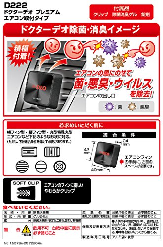 カーメイト 車用 消臭剤 ドクターデオ(Dr.DEO) プレミアム エアコン取り付け型 無香 安定化二酸化塩素 8g D222