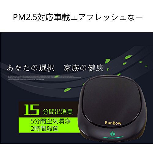 RanBow車載空気清浄機 イオン発生器スマート車用空気清浄機脱臭機車載活性炭空気浄化機Air Purifier、クリーナーCleaner、活性炭フィルター 、エアフレッシュナー マイナスイオン消毒静音コンパクト軽量低騒音設計車載用ホーム用にも対応 細菌/粉塵/煙/悪臭/花粉/PM2.5/有害な化学物質など除菌消臭自動的に空気の質を判別浄化