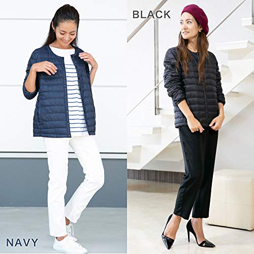 丸首タイプのダウンジャケットなので、防寒着の襟元とも干渉させないでレイヤリングができるメリットがあります。
