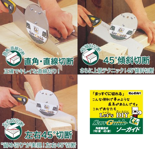 スタンダードなソーガイドです。直角、左右45度、斜め45度。固定式なので、初めてガイドを使用するDIY初心者にも使いやすいでしょう。ガイドは右利きでも左利きでも使用可能です。「ライフソー9寸目265 刃渡り265㎜」がセット販売されています。