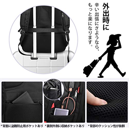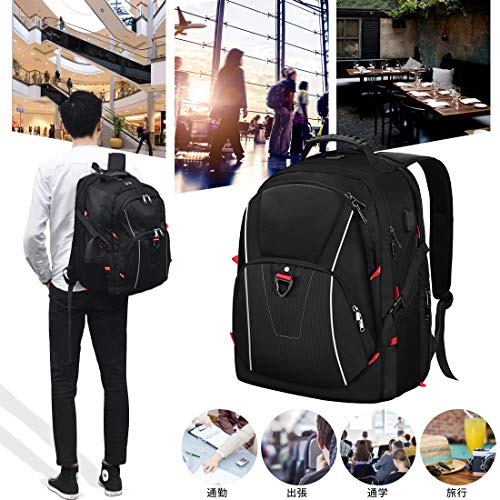 NUBILY リュック メンズ 防水レインカバー付き バックパック 大容量 リュックサック 盗難防止 17.3インチ PCバッグ ビジネスリュック USB充電ポート 多機能 通勤 通学 登山リュック 黒