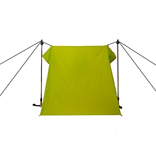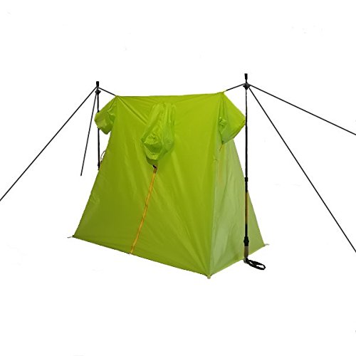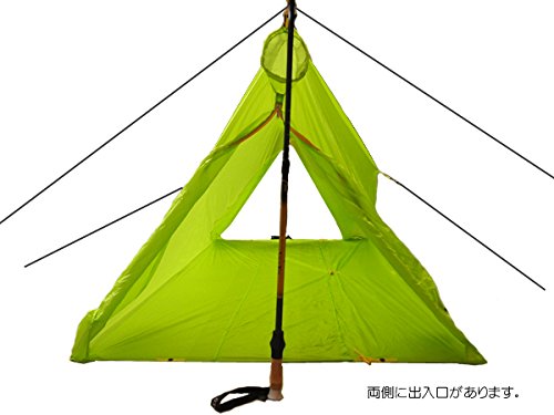 1人用のツェルトで、真ん中にも通気口を持たせた製品です。設営したときの居住するためのスペースは、幅が120cm、高さが110cm、奥行が72cmあるので、大人が座った状態で過ごせるスペースが確保できます。パッキングしたときの大きさは7.5cm×16.5cmとかなりコンパクトで、重さも170gの軽量につくられています、ただし、横になって寝られるだけのスペースはありません。