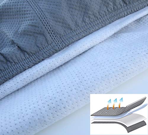 生地はアルミニウムフィルムと綿、HDPEとPEVAの4層でできているため、防水や塗装の保護、紫外線予防に効果がある車カバーとなっています。