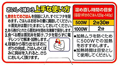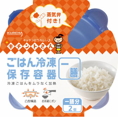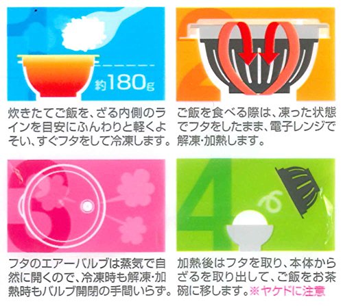 可愛いデザインでキッチン映えします。 炊き立てのご飯を入れて覚めたら冷凍庫に重ねて保存できます。 食べるときはそのまま電子レンジで3分、食卓へ。とても簡単です。