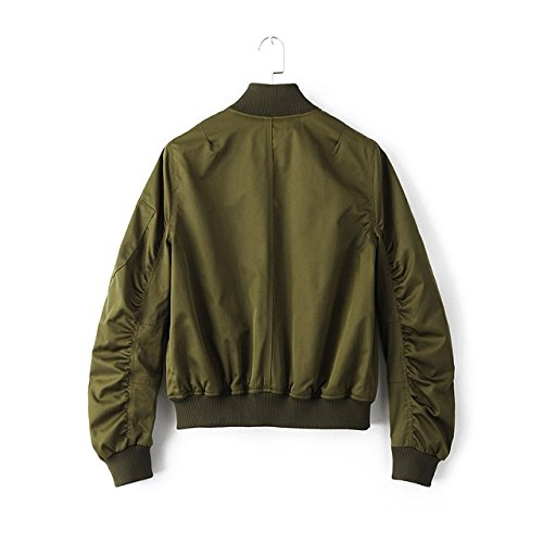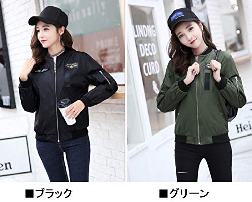 [ジルア] レディース ジャケット ブルゾン 無地 コート ジャンパー ミリタリー MA-1 エムエーワン アウター ([日本規格S] グリーン, 緑 L)#071