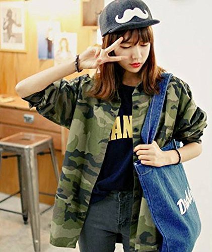 jiajia(ジア ジア) 迷彩柄 ビッグシャツ 長袖 レディース トップス 襟付き ボタン付き 迷彩シャツ 薄手 春夏 秋冬 カモフラ柄 ミリタリー カモフラージュ ロング ジャケット (M)