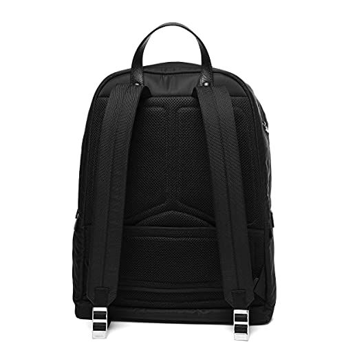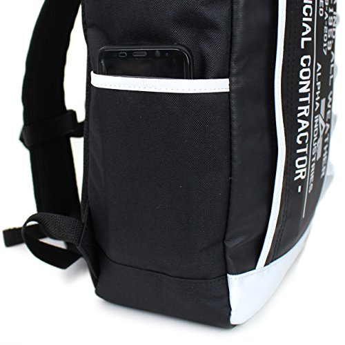 フロント部分にブランドの文字がプリントされて、フロント下の小物収納用ポケットにブランドロゴが施されているメンズ用の黒リュックになります。メイン収納部分には大量の収納物を収める事ができますので、タウンユースではもちろん、旅行用リュックとしても活躍してくれます。