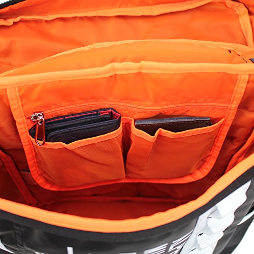 内側には小物類の収納に便利な小分けポケット付き。他の荷物に紛れがちな細々したアイテムを見つけやすく管理できます。フロントには広めのポケットを装備。メインの荷物と分けて管理したいアイテムの収納に役立ちます。