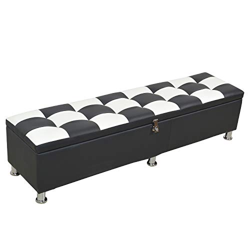 白と黒の2色で構成されているおしゃれなデザインの座面は弾力感があり、お尻にしっかりとフィットする快適な座り心地です。座面を開くと、大容量の収納スペースがありますので、日用品や衣類など様々なものをたっぷりと収納する事ができます。