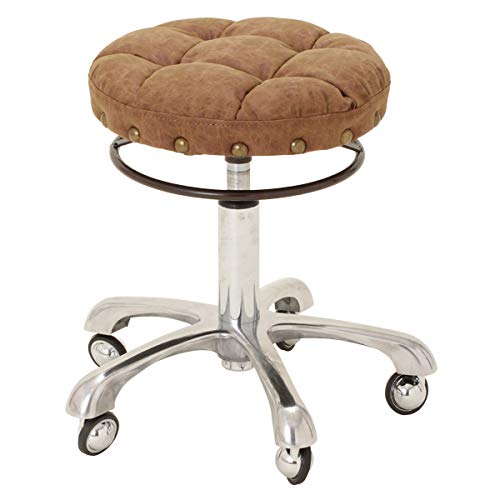 アンティーク調のレトロな雰囲気を漂わせていて、ボリューム感溢れる座面が装備されているおしゃれなキャスター付きスツールになります。