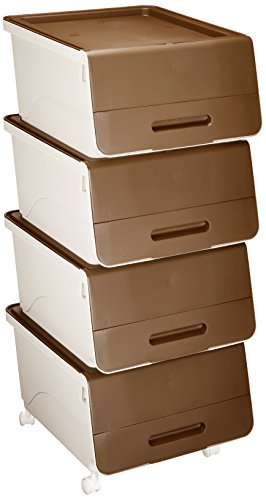 山善(YAMAZEN) オープンボックス フタ付き収納ボックス 4個組 浅型 キャスター付き サンドブラウン