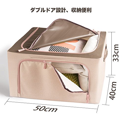 iOCHOW 収納ボックス 50x40x33cm 三個セット 収納ケース 衣類収納 ダブルドア 600Dオックス生地 カーキ色